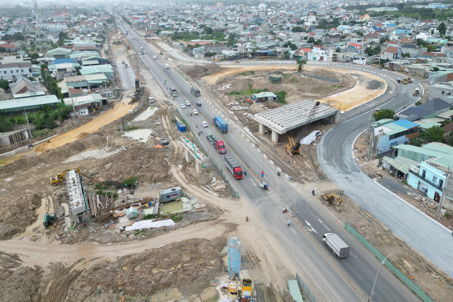 Nút giao Tân Hiệp, điểm kết nối giữa hai cao tốc trọng điểm Biên Hòa - Vũng Tàu và TPHCM - Long Thành - Dầu Giây đã dần hiện rõ hình hài, chuẩn bị bước vào giai đoạn hoàn thiện.