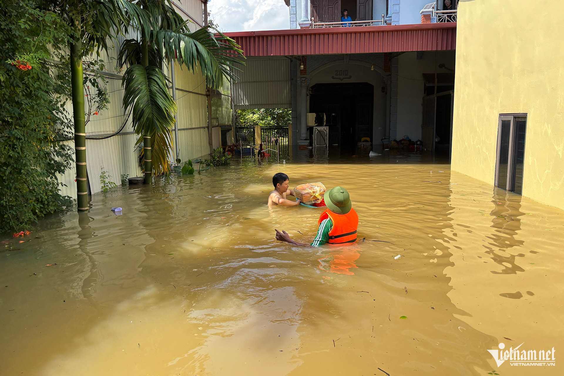 “Trước đó, khoảng 3h30 - 4h sáng nay, nước lên cao, tôi và Bí thư thôn Phạm Viết Hồng đi kiểm tra thì thấy hai ông bà Tịnh – Thùy ngồi trên mái nhà. Khi ấy chưa có xuồng, chúng tôi phải bơi vào đưa áo phao dìu hai ông bà ra”, ông Thống kể lại.